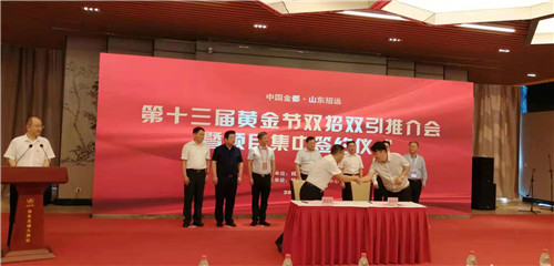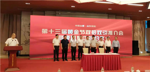 8月28日上午中国金都•山东招远第十三届黄金节双招双引推介会暨项目集中签约仪式在山东龙湖大酒店隆重举行。招远市市政府各级领导、江西闽能建设集团董事长出席并致辞。江西闽能建设集团董事长唐金和与招远市城区棚改项目代表签订项目合作协议。